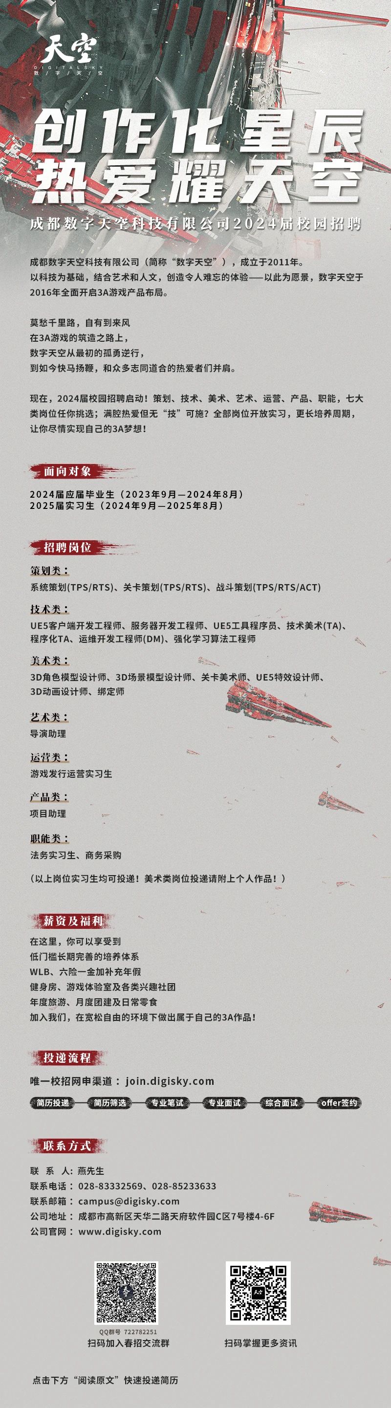成都數(shù)字天空2024屆春季校園招聘正式開啟!