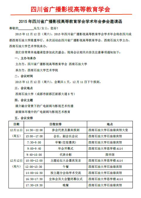 2015年四川省廣播影視高等教育學(xué)會(huì)學(xué)術(shù)年會(huì)參會(huì)邀請(qǐng)函