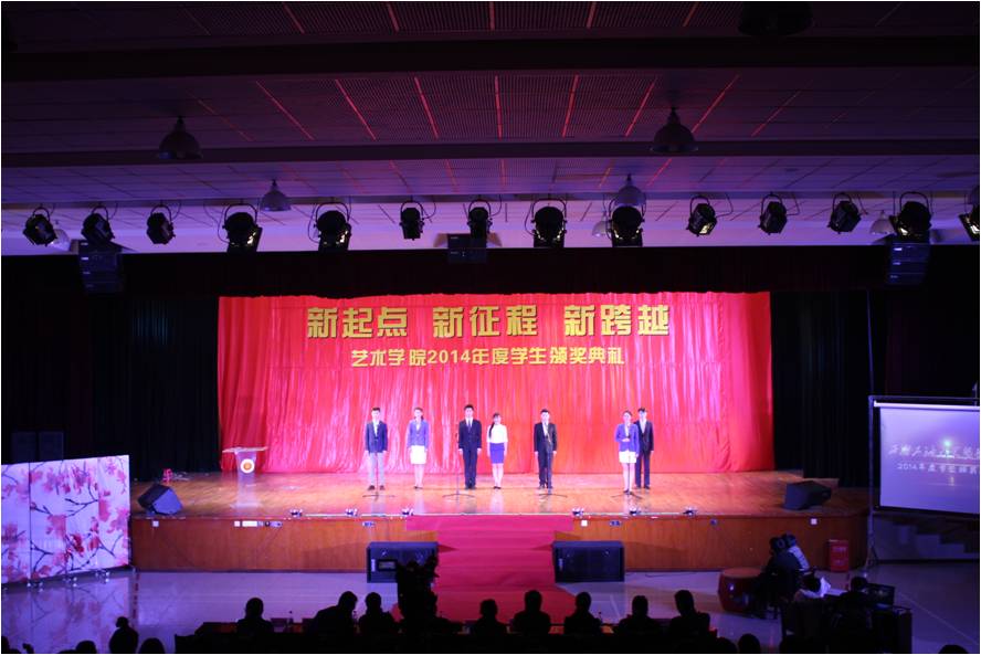 2014年12月29日晚7:30,西南石油大學藝術學院2014年度學生頒獎典禮在大學生活動中心201演播大廳舉行。頒獎典禮邀請到了西南石油大學副校長王玲、教務處處長黃健全、學生工作部(研究生工作部)部長蒲勇等校領導擔任頒獎嘉賓,藝術學院黨總支書記李忠偉、副院長林莉、副院長焦道利等院領導老師出席典禮。此次頒獎典禮是藝術學院創立至今首屆學生表彰大會,學院將以此為起點把盛會延續下去,表彰那些在專業學術和社會工作等方面努力并作出突出貢獻的同學。