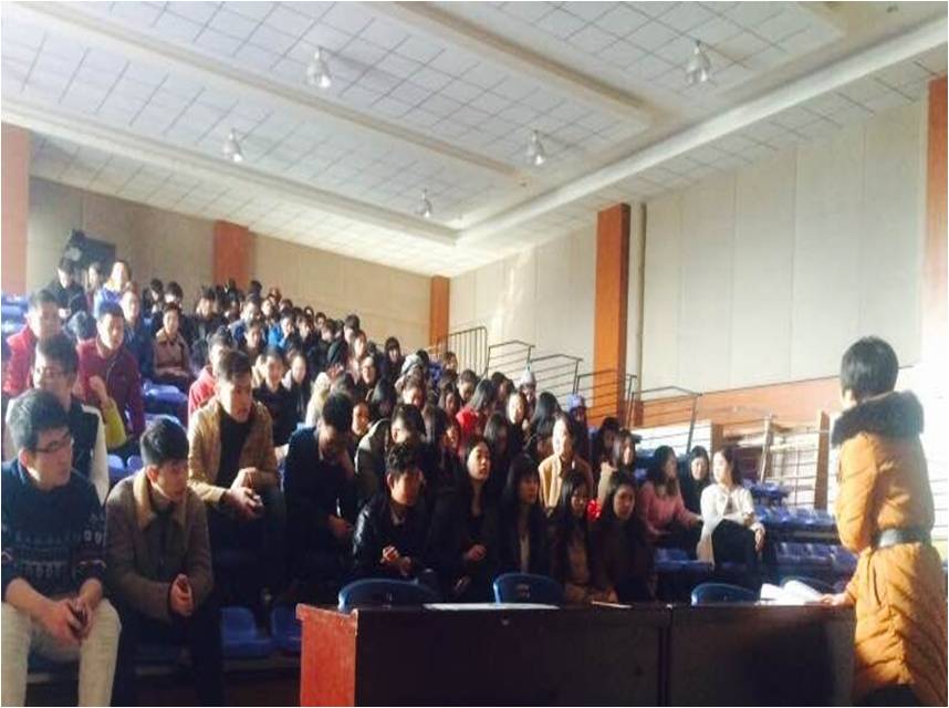 3月1日下午4點,藝術學院團總支書記、輔導員何姍與2013級學生見面場景