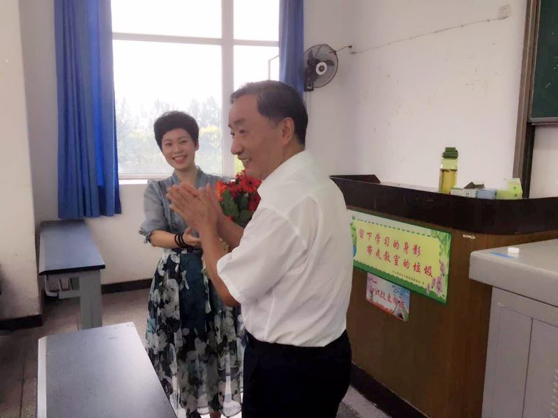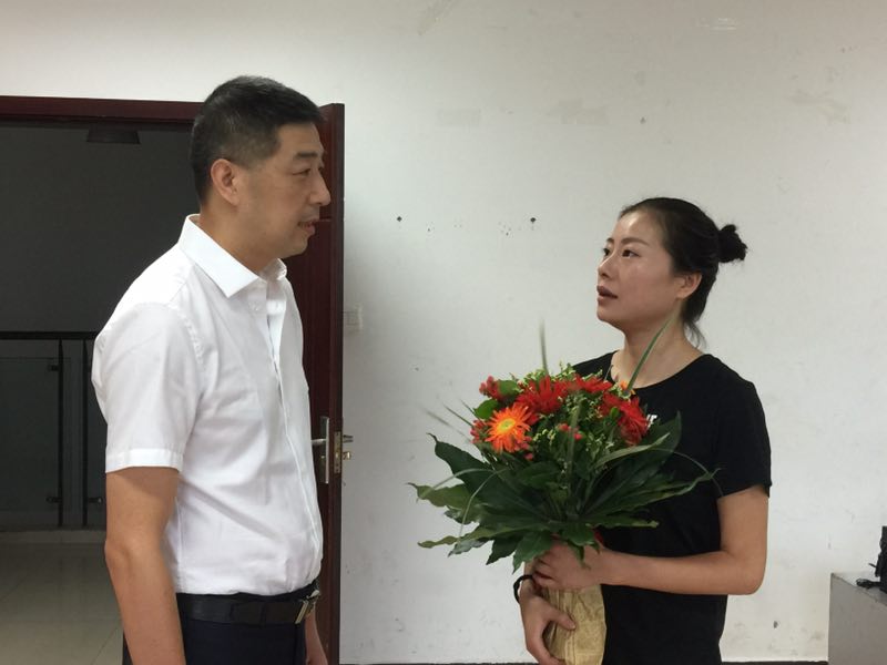 在藝術(shù)樓,侯忠建副部長為老師們送上了鮮花,與老師們進(jìn)行了短暫交流,叮囑大家注意身體健康,做到快樂工作。