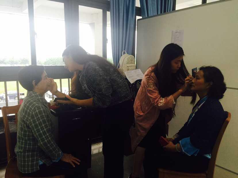 藝術(shù)學(xué)院高度重視此次文藝演出,提前安排各部門做足準(zhǔn)備工作。昨天中午,就有學(xué)生到201演播大廳迎接老教授們的到來并且?guī)椭F(xiàn)場工作人員布置文藝演出會(huì)場。演出開始前,我院老師和同學(xué)們有的在學(xué)生之家為參加演出的老教授們化妝;有的休息室在陪老教授們聊天寒暄;有的在中控室反復(fù)確認(rèn)機(jī)器設(shè)備是否正常;有的在后臺(tái)有條不紊的擺放道具;積極為即將開始的演出做準(zhǔn)備。