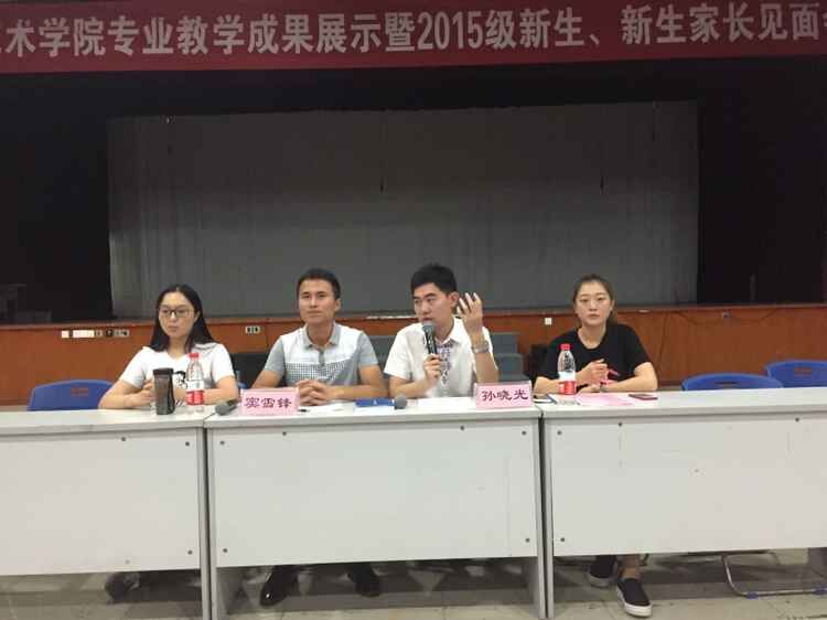 9月8日晚7點整,藝術學院2015級新生大會在藝術大樓201演播大廳順利舉行。本次大會由2015級廣播電視編導專業輔導員孫曉光老師,播音與主持藝術專業、影視表演專業輔導員竇雪峰老師主持,2012級優秀學姐、學院組織部部長以及輔導員學工助理參加本次大會。
