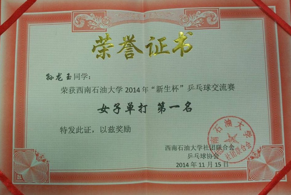 記者在隨后的采訪中了解到,孫龍玉并不簡簡單單是一名2014級藝術學院播音專業的一名普通學生,還是國家乒乓球二級運動員。她從5歲起就開始接觸乒乓球,剛開始時,只是父母想讓她作為一個愛好和特長來培養,沒想到堅持到了現在。孫龍玉在回憶自己小時候練球的時候說道,無論嚴寒還是酷暑,只要是比賽,哪怕是練習都是短袖短褲上場,而且在一天的嚴格訓練之后還有身體素質訓練最最普通的身訓就是繞400米的操場跑30圈。