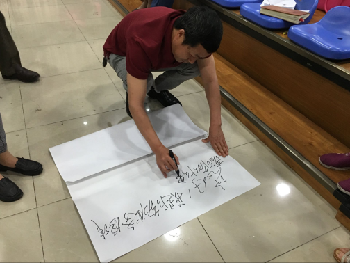 林莉老師說:“兩學一做,關鍵在行動,作風建設要用實際行動來體現。后勤服務總公司的領導主動思考、找準問題,能夠為學校后勤推進‘兩學一做‘工作做一點兒貢獻,是我們藝術學院的榮幸。感謝后勤員工的辛勤工作。”接著,林莉老師分析了服務的價值,用體驗式教學方法帶領大家感受有效溝通的效果,后勤服務總公司領導與員工一起積極參與,用心體驗,對溝通中的語言技巧及傾聽技巧進行了實訓,培訓收到了預期效果。