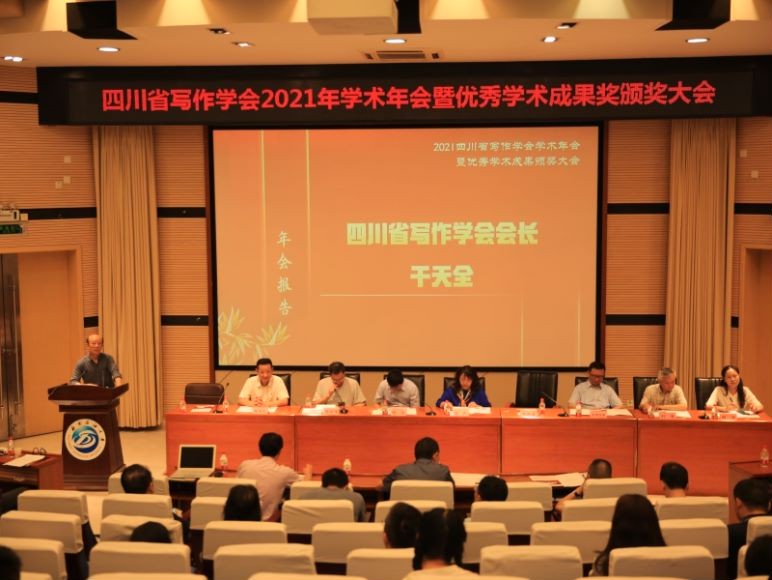 四川省寫作學(xué)會(huì)會(huì)長(zhǎng)干天全教授作年會(huì)工作報(bào)告