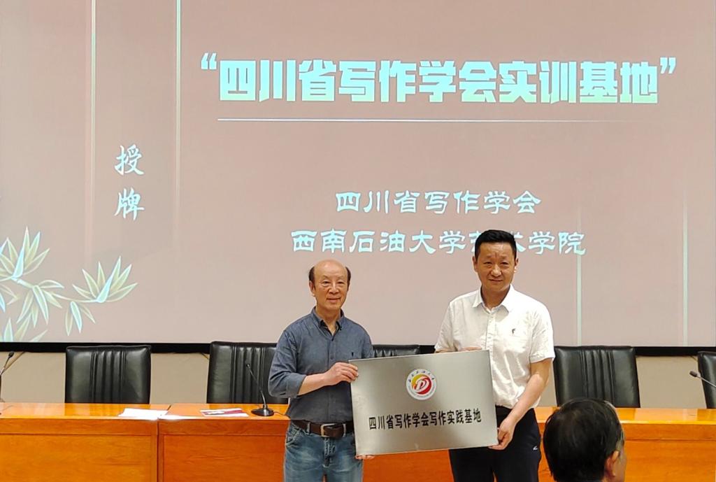 會(huì)上,四川省寫作學(xué)會(huì)與西南石油大學(xué)聯(lián)合建立了“四川省寫作學(xué)會(huì)實(shí)訓(xùn)基地”、“西南石油大學(xué)創(chuàng)意寫作協(xié)會(huì)”,并進(jìn)行了授牌儀式和揭牌儀式。