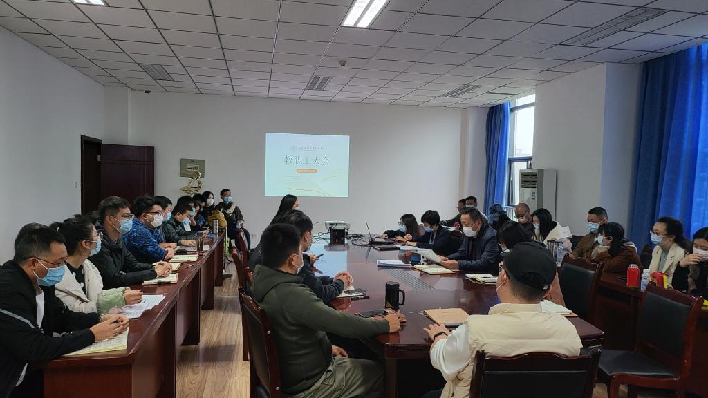 2021年11月4日,學院在藝術大樓306會議室舉行了2021-2022學年秋季學期第3次教職工大會,學院院長焦道利、學院黨總支副書記何姍、學院副院長江霄以及全體教職工參加,會議由焦道利和何姍分別主持,分為四個板塊:學習《高等學校課程思政建設指導綱要》、學習《習近平總書記重要講話精神》、《高校師生保密知識讀本專題學習》、紀律規矩專題學習討論會。