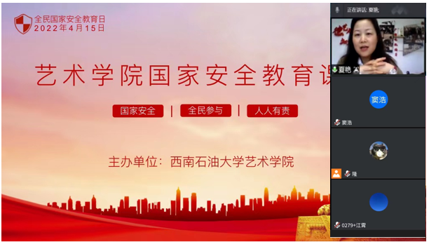夏艷表示,本次講座按照學校開展2022年國家安全教育日系列宣傳教育活動相關要求,根據疫情防控安全開展線上學習,目的是讓各位老師從專業領域了解與樹立國家安全意識,自覺關心維護國家安全的重要性。