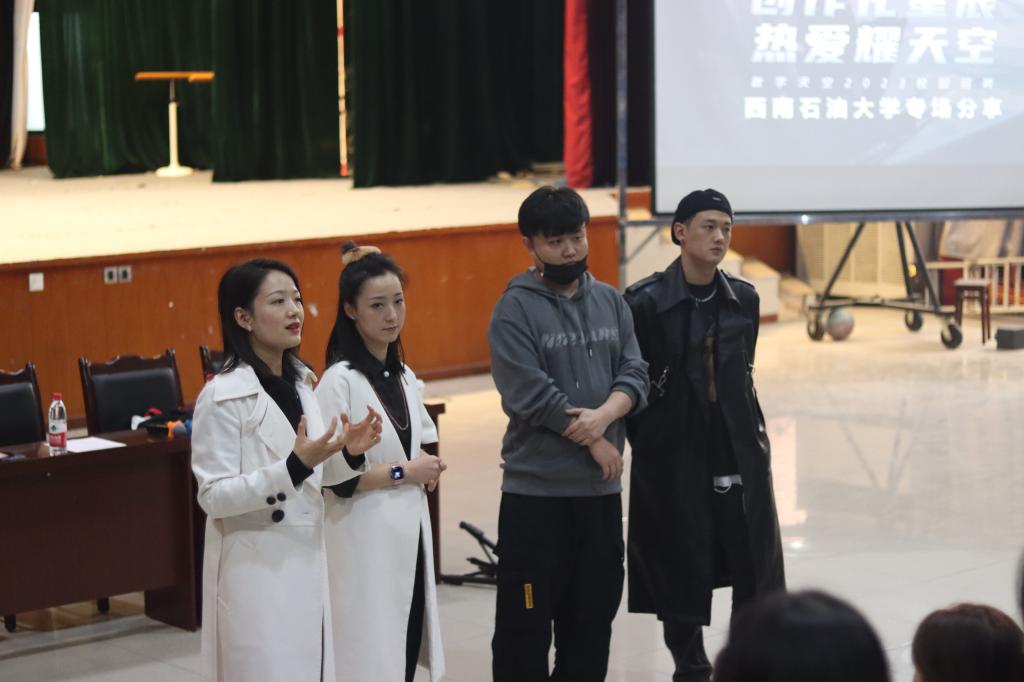 2022年11月,西南石油大學藝術(shù)學院表演教研室通過“引進來”和“走出去”相結(jié)合的方式,與成都數(shù)字天空科技有限公司(簡稱“數(shù)天”)成功舉辦校企合作實踐教學活動。實習實踐是高校實踐教學體系的重要環(huán)節(jié),表演教研室一直注重實踐教學和數(shù)字科技在教學表演中的獨特作用,2020年便與“數(shù)天”建立了密切穩(wěn)定的校企合作關(guān)系,并在該公司設(shè)立表演教學就業(yè)實訓基地。此次實踐教學活動旨在探索數(shù)字時代背景下表演藝術(shù)實驗教學新模式,開辟人才培養(yǎng)新路徑,開拓藝術(shù)與科技融合新領(lǐng)域。