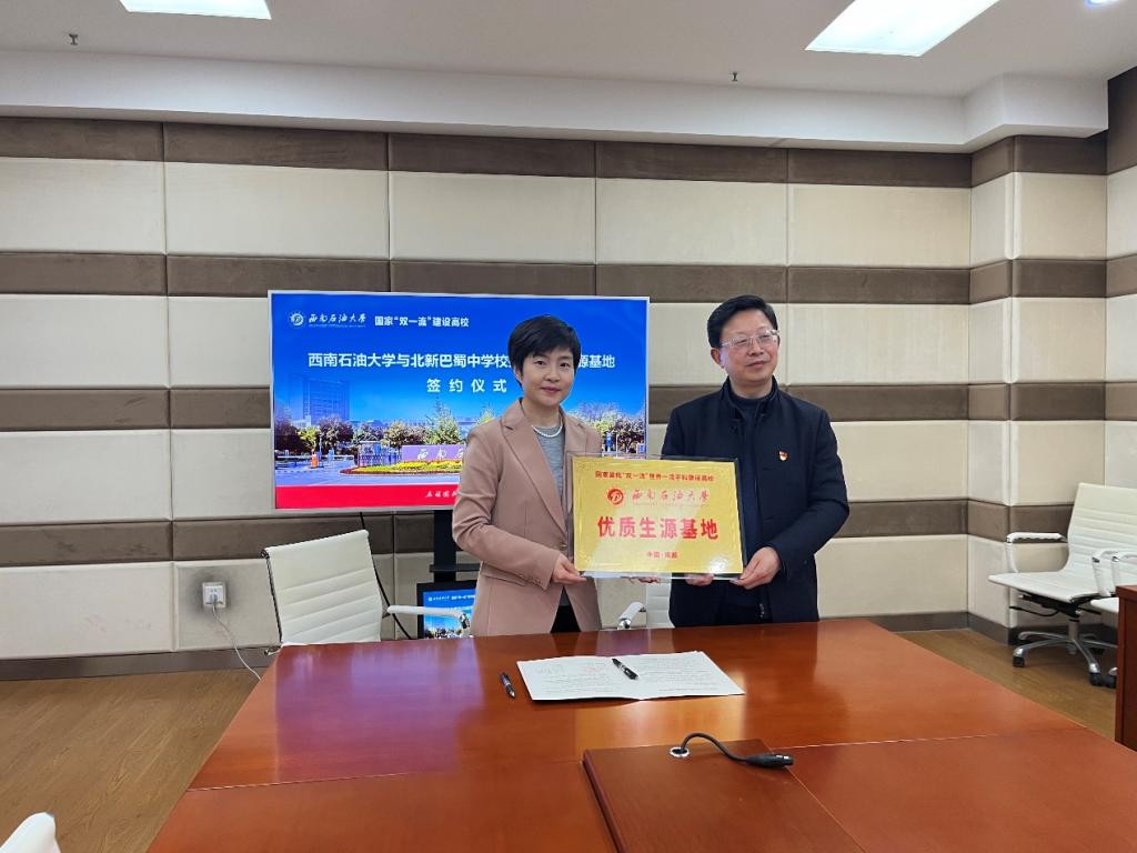 重慶市北新巴蜀中學(xué)校以藝術(shù)教育為辦學(xué)特色,院黨委副書記何姍一行與黨委書記楊輝在重慶北新巴蜀中學(xué)校會議室舉行了座談并介紹了西南石油大學(xué)的招生情況和藝術(shù)學(xué)院的辦學(xué)特色。雙方簽署了“優(yōu)質(zhì)生源基地共建協(xié)議”,向重慶市北新巴蜀中學(xué)校授牌“西南石油大學(xué)優(yōu)質(zhì)生源基地”,并贈送了“學(xué)生職業(yè)生涯測評與規(guī)劃系統(tǒng)”。授牌儀式結(jié)束后,何姍還為北巴學(xué)子開展了招生宣講和職業(yè)生涯規(guī)劃講座。