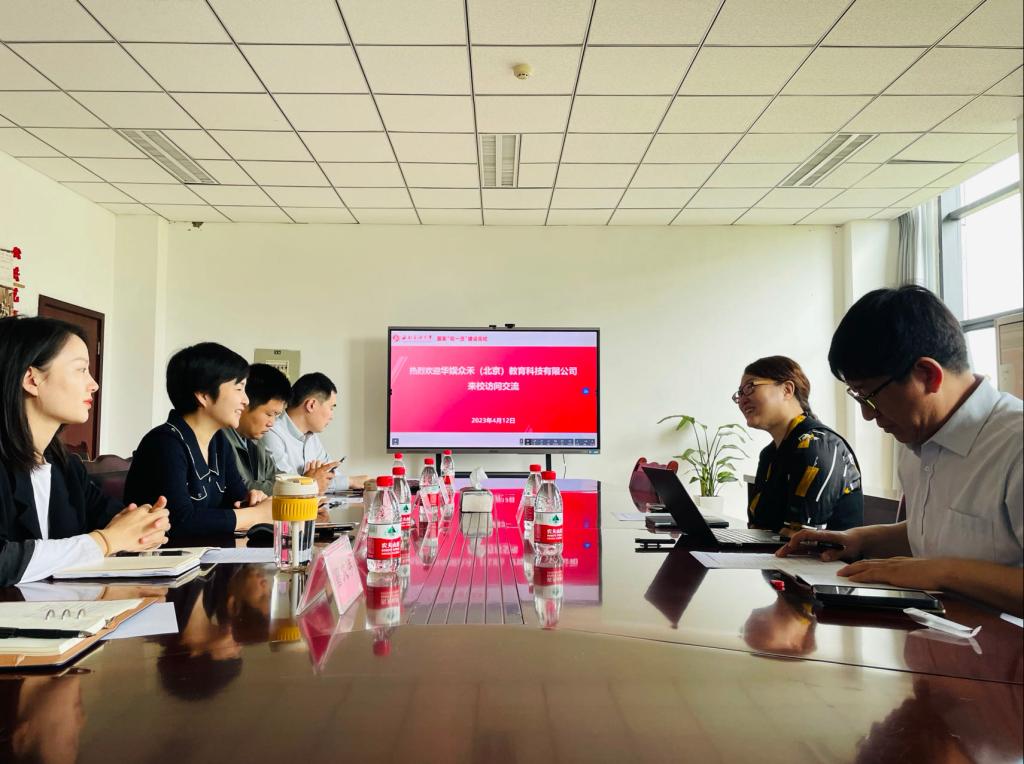 4月12日上午,北京華娛眾禾教育科技有限公司影視副總經理李亞光、影視產品負責人余豐幫來我院進行訪問交流,座談商洽合作事宜。會議由藝術學院黨委副書記何姍主持,編導專業教研室主任李序、表演專業教研室主任張婷、團委副書記孫曉光及2024屆畢業生輔導員曹大偉參加了座談會議。