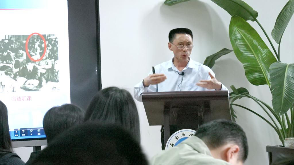 他講述了四川石油學院首任院長兼黨委書記馬載的故事,西南石油學院院長張紹槐教授的故事,西南石油學院黨委書記張永一教授的故事,西南石油學院副院長李士倫教授的故事,西南石油學院院長羅平亞院士的故事。他說:“父輩旗幟,高山仰止,是引導我們前進的力量。”這些原汁原味的故事深深打動了在場的每一位老師,他們為前輩們崇高的師德風范深深折服。