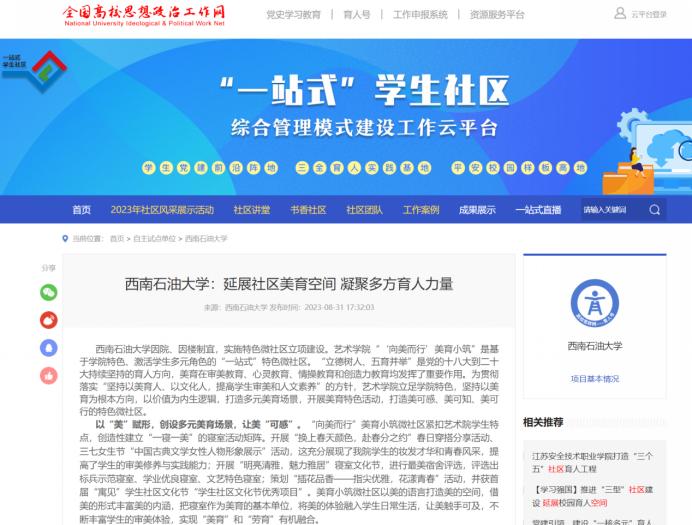 美育小筑微社區以美的“感、知、行”為實現路徑,扎根于學生寢室,用寢室作為美育的另一切入點,讓美可知、可感、可行,將美滲透進學生的學習與生活,讓學生對“美”的認同更深、體悟更強。