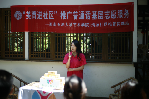 西柚研學暑期實踐隊為清源社區居民開展推普講座