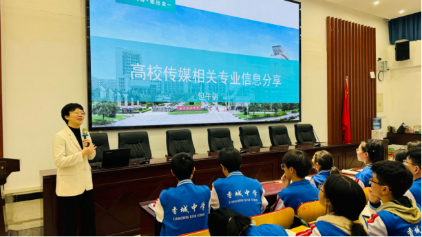 為持續加強我校與優質生源中學之間的聯系,為積極選拔、輸送和共同培養優秀學生搭建更好的平臺,10月14日下午,藝術學院黨委副書記、紀委書記何姍,廣播電視創新團隊黨支部書記但午劍及招生工作聯絡人曹大偉一行前往成都市新都香城中學開展優質生源基地維護工作并進行講座。