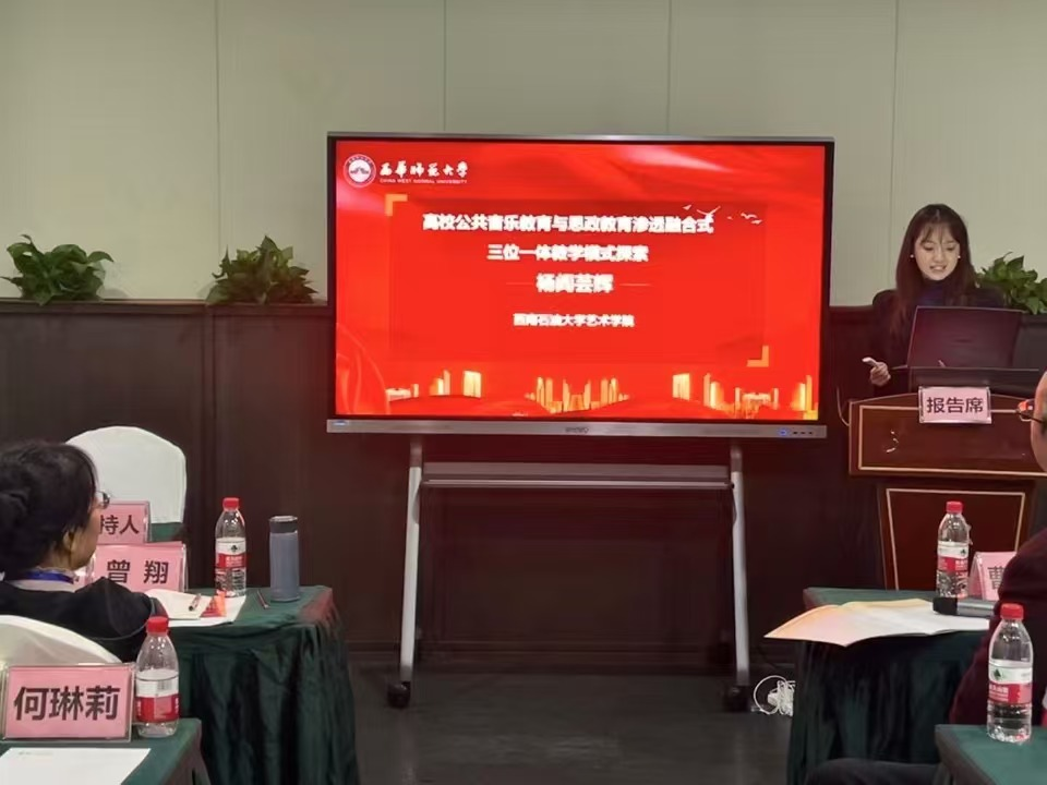 11月,楊閻蕓輝老師在四川省大學(xué)生思想政治教育論壇上,發(fā)表了題為“高校音樂(lè)教育與思想政治教育滲透融合三位一體教學(xué)模式探索”的報(bào)告。楊老師深入探討了高校音樂(lè)教育與思想政治教育的融合路徑,為創(chuàng)新高校思政教育模式提供了有益借鑒。