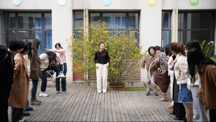 活動以“增情感,促交流”為主線,將參與者分為兩組,在兼具協作性與創意性的互動游戲中深化交流:“你比我猜”將日常詞匯轉化為肢體語言,考驗團隊默契;"同心傳環"要求各組手拉手傳遞呼啦圈,培養節奏協調能力;“創意布藝工坊”環節中,教職工協同完成主題手作,充分展現女性創造力。