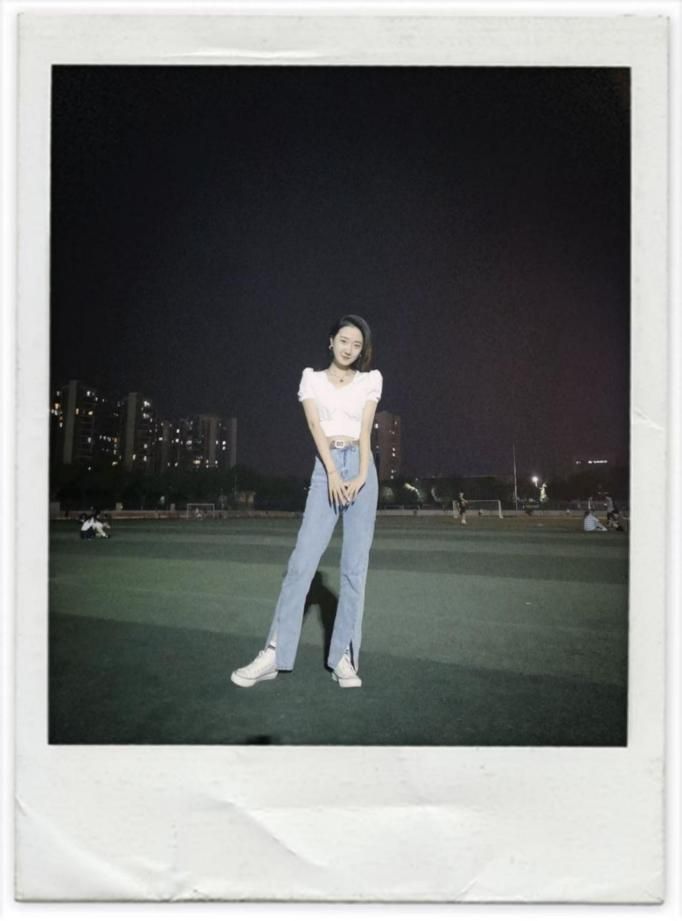 張博宇:泡泡袖短款白T+淺藍微喇牛仔褲+小白鞋,清新配色適合教室與圖書館場景。