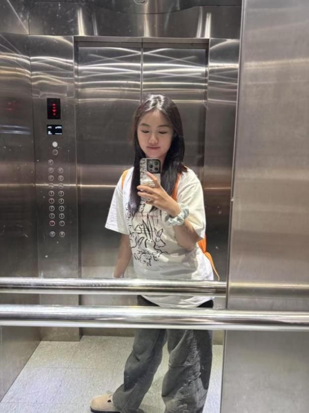 張森森:棉質短袖襯衫、寬松傘兵褲搭配帆布鞋,淺色調防曬又顯活力,適合日常學習與休閑。