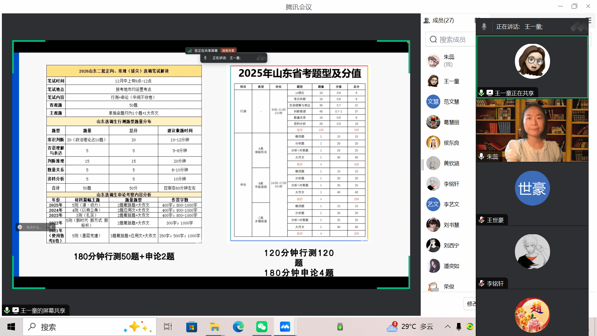 朱蕊指出,面對日益嚴峻的就業形勢,提前規劃、精準備考至關重要,希望同學們能珍惜此次機會,汲取寶貴經驗。分享會上,張凱翔與王一童結合自身備考及工作經歷,分別從選調生筆試面試技巧、備考時間規劃、心理調適等方面分享了實用經驗,并詳細介紹了山東威海選調生的實際待遇、工作內容及崗位發展前景。此外,他們還對近年選調生招錄政策、崗位發布情況、報錄比數據等進行了分析,為同學們提供了有針對性的報考建議。