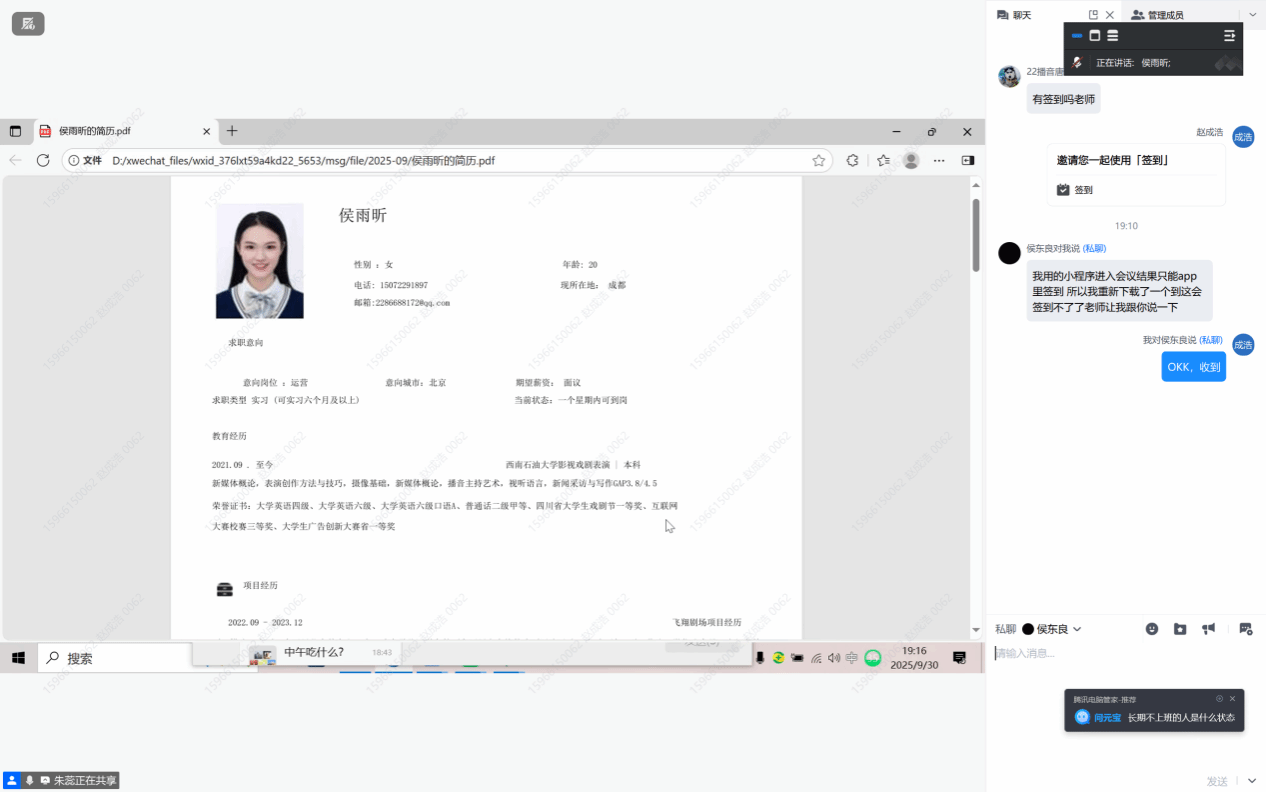 分享會(huì)伊始,兩位學(xué)長學(xué)姐聚焦簡(jiǎn)歷優(yōu)化重點(diǎn)。他們強(qiáng)調(diào),簡(jiǎn)歷需清晰呈現(xiàn)“姓名-性別-現(xiàn)居住地-求職意向”基礎(chǔ)信息,校園與實(shí)習(xí)經(jīng)歷需遵循“公司/學(xué)校-職位/崗位-成果”邏輯,剔除無用細(xì)節(jié),同時(shí)堅(jiān)守誠信原則,拒絕浮夸表述。孫圣博學(xué)長還推薦Canva等工具網(wǎng)站獲取專業(yè)簡(jiǎn)歷模板,借助幫助同學(xué)們高效制作簡(jiǎn)歷。侯雨昕學(xué)姐以自身簡(jiǎn)歷為例,展示如何將個(gè)人實(shí)習(xí)、實(shí)踐經(jīng)歷數(shù)據(jù)化,如“小紅書爆文平均點(diǎn)擊1000+”“雙十一期間助力產(chǎn)品GMV達(dá)90多萬”,凸出自身優(yōu)勢(shì),讓簡(jiǎn)歷更具說服力。