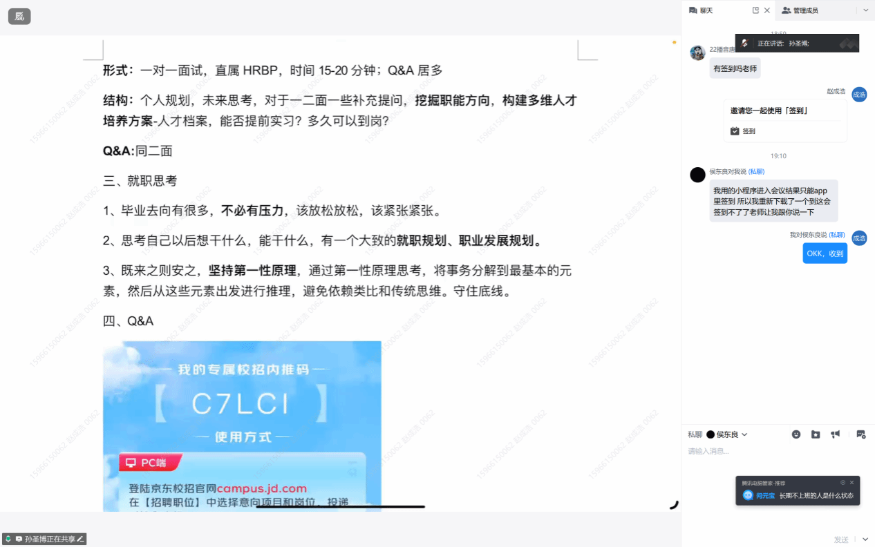 面試經(jīng)驗(yàn)分享環(huán)節(jié),學(xué)長學(xué)姐介紹,群面多為8-10人無領(lǐng)導(dǎo)小組討論,題目常圍繞業(yè)務(wù)實(shí)際場(chǎng)景,流程包含5-8分鐘讀題、5分鐘個(gè)人發(fā)言、8分鐘自由討論及2分鐘HR提問。談及二面(業(yè)務(wù)面),侯雨昕學(xué)姐表示,一對(duì)一面試中,自我介紹需控制在2-3分鐘,涵蓋個(gè)人優(yōu)勢(shì)與“客戶為先、創(chuàng)新?lián)?dāng)”等行為習(xí)慣。孫圣博學(xué)長建議同學(xué)們直擊問題核心,先亮結(jié)果再述過程,善用藝術(shù)生的重音、停連優(yōu)勢(shì),保持自信大方;簡(jiǎn)歷要清晰說明成果參與度與時(shí)間管理方法,HR常關(guān)注“任務(wù)拆解能力”“加班接受度”等焦點(diǎn)問題;問答環(huán)節(jié)可主動(dòng)咨詢崗位晉升周期與公司培養(yǎng)方案,展現(xiàn)求職誠意。