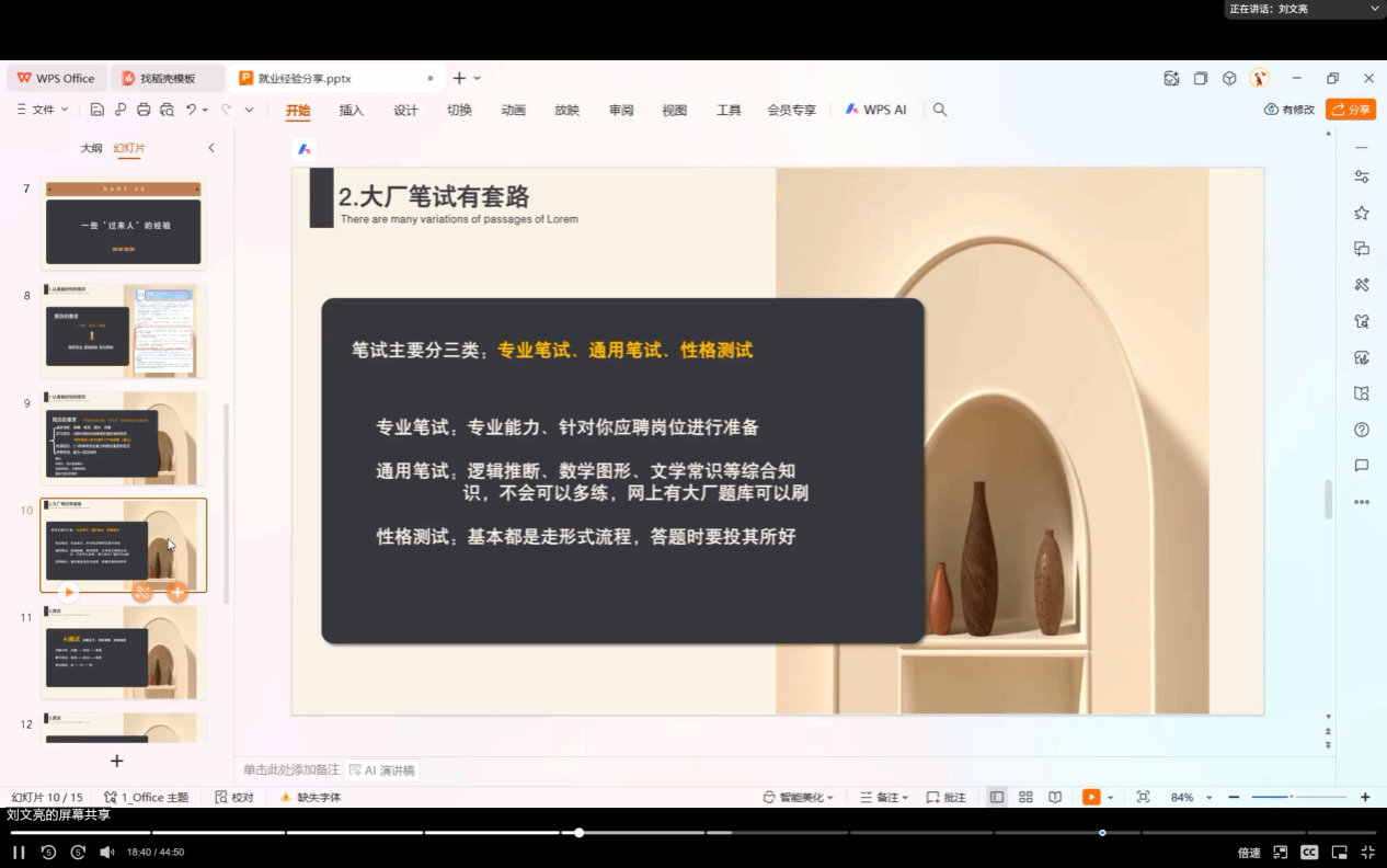 筆試與面試技巧方面,他介紹,筆試分為專業筆試、通用筆試(含邏輯、英語)和性格測試,建議同學們提前通過刷題庫做好準備。特別提醒各位同學,AI面試需注重回答結構清晰,線下面試則要著裝正式,運用STAR法則(情境、任務、行動、結果)表達,充分展現自信與個人亮點,給面試官留下深刻印象。