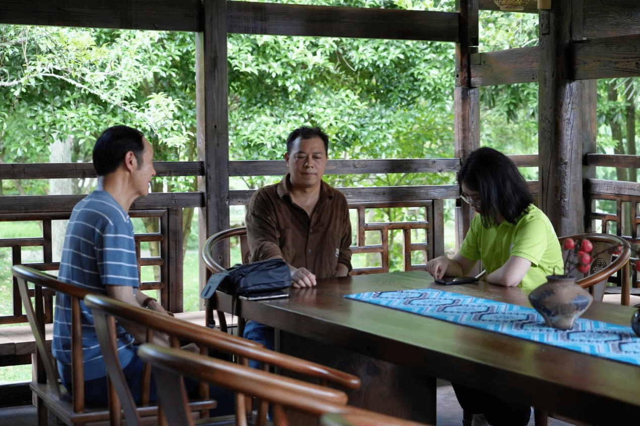 隨后,團隊又走訪了何氏根雕的非遺傳承人何平。何平先生的工作室坐落于唐崖土司城遺址的深山中,我們沿著石砌小路,終于到了在何平的工作室。在這里,形態各異的樹根經過精心的構思和細致的雕刻,變成了栩栩如生的人物、動物和景觀。老先生坐的筆挺,鏗鏘有力:“我們論技巧肯定比不過漢族木雕千百年的技巧,但我們生于山林之中,就應該看到這山水間的野性,抓住一個樹根最本質的形象,釋放它本來的、質樸的靈氣。”何平老先生一邊演示雕刻技巧,一邊分享創作心得,讓同學們感受到化腐朽為神奇的藝術魅力,以及他對這門手藝數十年如一日的熱愛與堅持。通過對何平先生的深度采訪,我們知道了他兩次參加國家級比賽,在一眾精細的木雕中憑借一尊放牛根雕脫穎而出的經歷,他強調根雕最大的特點就是不會去給根材塑形,只會在原有的形狀上去雕琢細節。我們也深深領悟到原始的,自然的,民族的就是最好的這句話的意義。