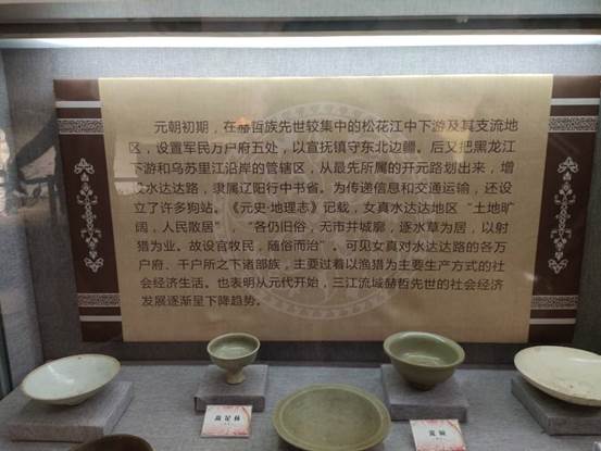 隊員們首先先對有著紀念赫哲族歷史的紀念館進行了探訪,初步的了解了赫哲族的發(fā)展歷史。赫哲族是中國東北地區(qū)一個歷史悠久的少數(shù)民族,民族語言為赫哲語,屬阿爾泰語系滿-通古斯語族滿語支(也有觀點認為應(yīng)歸入那乃次語支),沒有本民族的文字,使用西里爾字母來記錄語言,因長期與漢族交錯雜居,通用漢語。由于居住地域廣闊,赫哲人的自稱較多,如"那貝"、"那乃"、"那尼傲","赫哲"作為族稱最早出現(xiàn)于康熙二年(1663)三月,1934年凌純聲《松花江下游的赫哲族》一書出版后,"赫哲"作為族稱開始廣泛傳播。赫哲族主要分布于黑龍江、松花江、烏蘇里江交匯構(gòu)成的三江平原和完達山余脈,集中居住于三鄉(xiāng)兩村,即同江市街津口赫哲族鄉(xiāng)、八岔赫哲族鄉(xiāng)、雙鴨山市饒河縣四排赫哲族鄉(xiāng)和佳木斯市敖其鎮(zhèn)敖其赫哲族村、撫遠縣抓吉鎮(zhèn)抓吉赫哲族村。