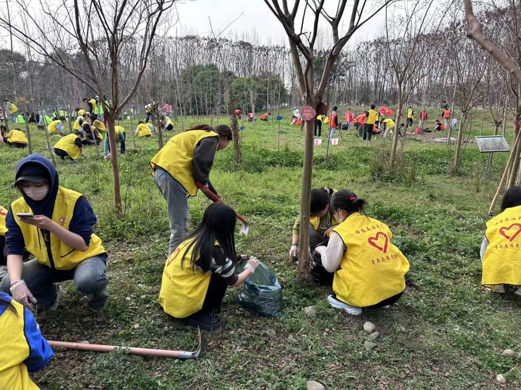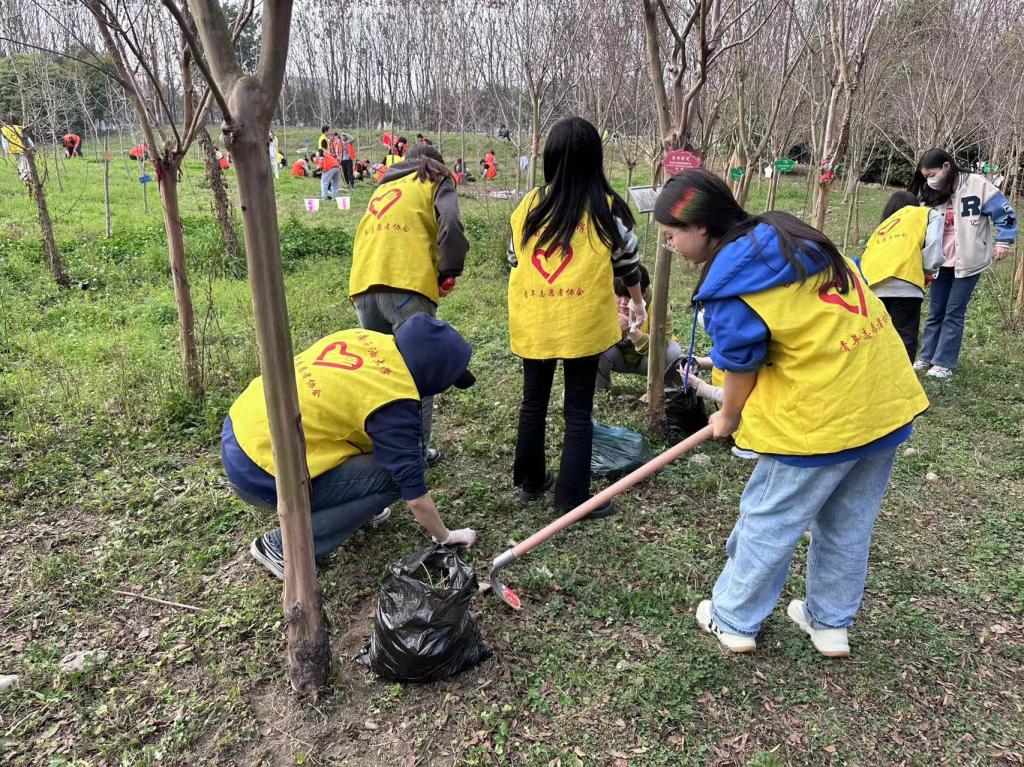 “你來把樹苗扶正,我來除草培土”護林現場,志愿者們一邊互相默契配合著,一邊交流種植護林的經驗感想,揮鍬鏟土、踏土扶苗、拎桶澆水,時不時直腰俯瞰是否還有遺漏垃圾,每一項工作都一絲不茍,一派熱火朝天的景象。經過一下午的緊張勞動,感恩林在和煦的春風里,展露出勃勃生機。最后大家在汗水中和歡笑中愉快的完成了志愿任務。