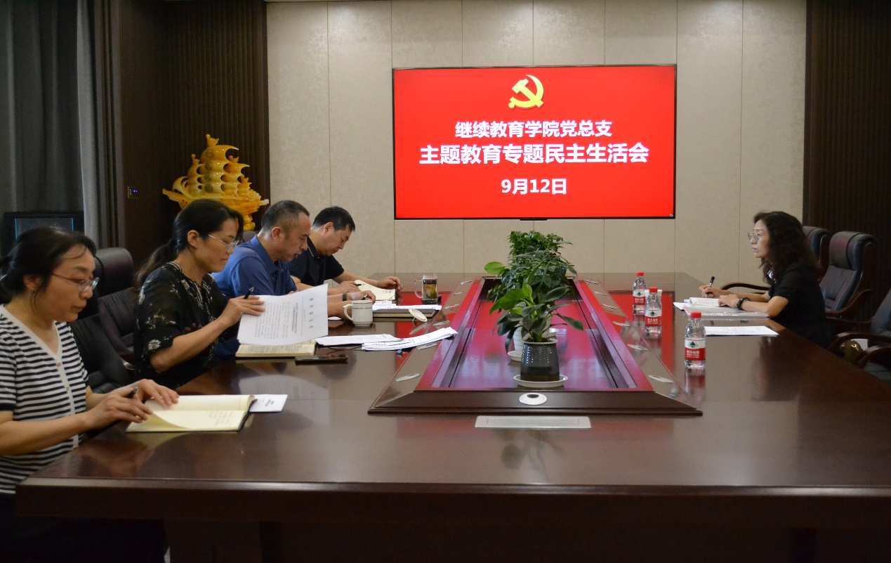 9月12日,繼教院領導班子召開學習貫徹習近平新時代中國特色社會主義思想主題教育專題民主生活會。學校第二聯絡指導組組長肖曉華到會指導。院黨總支書記許亞平主持會議。