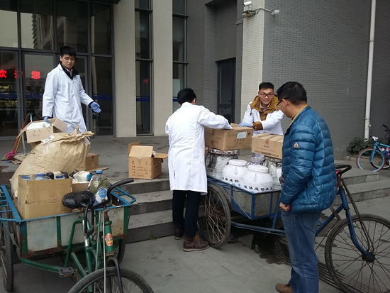 1月19日下午,實驗中心在學校實驗室與設備管理處的統一安排下,分管實驗中心安全的中心副主任對實驗中心各實驗室、研究室的危險廢棄物進行了轉移交接。轉移中,中心相關負責人到各研究室進行了分類指導,對轉移過程中進行了安全監督,確保轉移過程萬無一失。