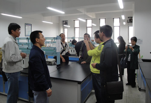 9月23日上午,西華師范大學化學化工學院劉全忠教授、學校化學合成與污染控制省級重點實驗室主任蔣曉慧教授以及化學化工學院相關領導、各教研室主任一行12人來中心進行參觀交流。