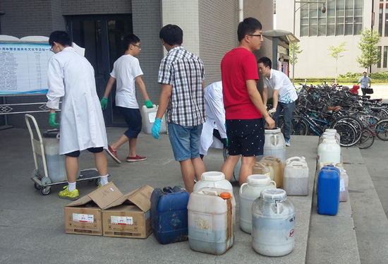 5月13日下午,實(shí)驗(yàn)中心分管實(shí)驗(yàn)安全工作副主任卿大詠老師和相關(guān)實(shí)驗(yàn)室教師對實(shí)驗(yàn)中心的危險化學(xué)品廢棄物轉(zhuǎn)移工作進(jìn)行了認(rèn)真組織,相關(guān)教師深入到各實(shí)驗(yàn)室進(jìn)行督查要求,指導(dǎo)及時按學(xué)校要求進(jìn)行轉(zhuǎn)移,對搬運(yùn)過程中的要求、交接現(xiàn)場等進(jìn)行了全程指導(dǎo)。據(jù)悉,本次移交除常規(guī)的化學(xué)廢棄試劑、廢液移交外,還將空化學(xué)試劑瓶等進(jìn)行了移交。 |