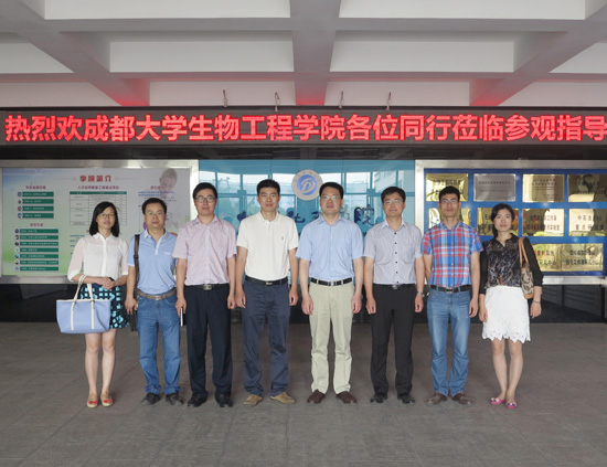 5月27日上午,成都大學生物工程學院副院長郭曉強、實驗技術中心主任謝貞建一行6人來我院實驗中心交流調研。化學化工學院副院長段明,化學化工實驗教學中心常務副主任朱鵬飛、副主任卿大詠,中心教師王娜、朱天菊、馬麗華、陳秀麗、趙徊潔參加了交流會,交流會由副院長段明主持。 段院長首先代表學院對郭院長一行表示熱烈歡迎,并簡要介紹了我院實驗中心的基本情況。隨后,實驗中心常務副主任朱鵬飛老師代表實驗中心就對方關心的實驗課程設置、實驗室管理機制、師資隊伍建設、實驗室安全與環保建設等問題向對方進行了詳細介紹。之后,雙方還就國家級實驗教學示范中心建設等問題進行了廣泛而深入的交流。會后,郭院長一行在朱鵬飛老師的陪同下參觀考察了我院教學實驗室和分析測試平臺。 |
