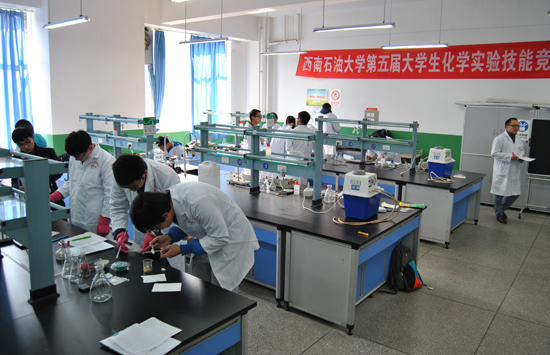 11月28日下午,第五屆化學實驗技能競賽非化學組決賽的六支隊伍在實驗中心實驗室進行了實驗操作競賽。來自石油與天然氣工程學院、地球科學與技術學院 、土木工程與建筑學院三個院系的17名同學參加了決賽。