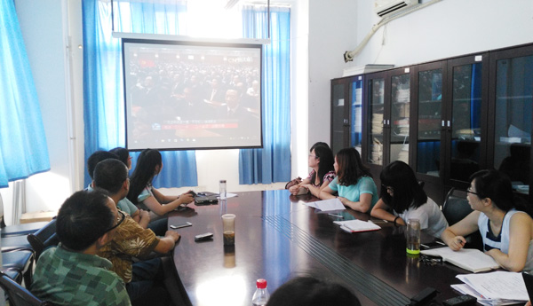 7月8日下午,實驗中心黨支部全體黨員在明德樓A222會議室集中學習了習近平總書記慶祝建黨95周年講話精神。
