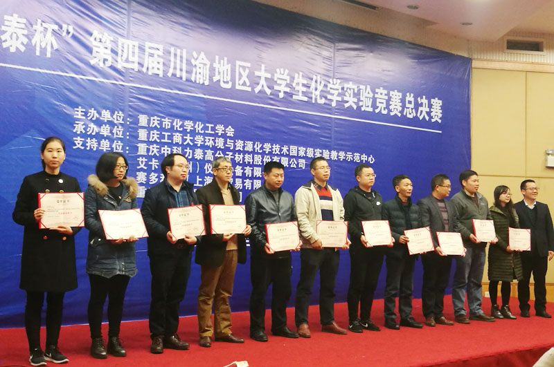 ........12月2日至3日,由重慶市化學(xué)化工學(xué)會主辦,重慶工商大學(xué)環(huán)境與資源化學(xué)技術(shù)國家級實驗教學(xué)示范中心承辦的“中科力泰杯”第四屆川渝地區(qū)大學(xué)生化學(xué)實驗競賽總決賽在重慶工商大學(xué)舉行。來自川渝兩地的18所院校的27支參賽隊參加了本次比賽。我院2015級學(xué)生趙海、羅瑤、朱先鋒組成的代表隊在本屆比賽中奪得二等獎,指導(dǎo)教師賈朝霞、李柯燃老師獲得優(yōu)秀指導(dǎo)教師。