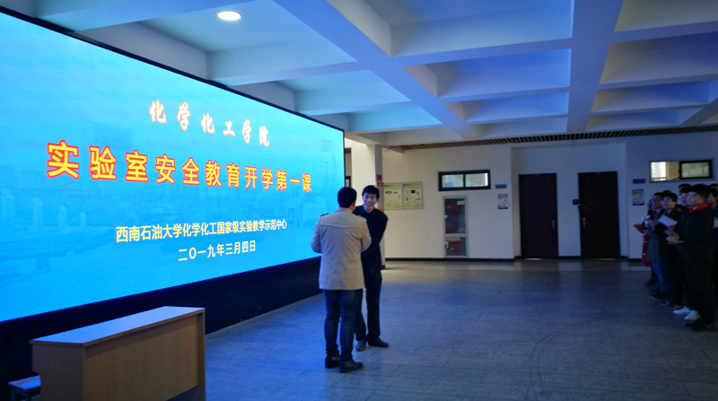 為深入貫徹落實國務院領導同志關于北京交通大學“12.26”實驗室爆炸事故重要指示批示精神,深刻吸取實驗室事故教訓,有效防范類似事故發(fā)生,確保師生安全和校園穩(wěn)定。 3月4日中午,中心在明德樓A區(qū)大廳開展了實驗室安全教育開學第一課活動,化學化工學院全體院領導、各教研室主任、書記、實驗中心全體教師,青年教師代表、全院研究生學生干部,各研究室學生代表,本科班級學生干部參加了本次該活動,活動由實驗中心分管實驗安全的副主任卿大詠主持。 實驗室安全工作是學院日常工作的重點,中心一直高度重視,本次實驗室安全教育開學第一課活動中,化學學院段明院長為新一輪崗位聘任中實驗室專職安全管理員頒發(fā)了聘書,學院分管實驗室工作的王林元副院長與青年教師代表簽到了教師實驗室安全責任書,實驗中心安全管理負責人與學生代表簽訂了學生實驗室安全責任書。學院黨委書記王兵教授為全體參會師生就實驗室安全管理以“遵守規(guī)章制度、形成安全意識、養(yǎng)成良好習慣”為主題對實驗室安全管理、安全教育提出了要求和希望。 最后,學院全體院領導、青年教師代表、學生代表共同開啟了本學期實驗安全教育學習平臺,向全體師生倡議“自覺安全學習,強化安全意識,筑牢安全紅線,遵守操作規(guī)程,杜絕安全事故,共建平安校園” 。