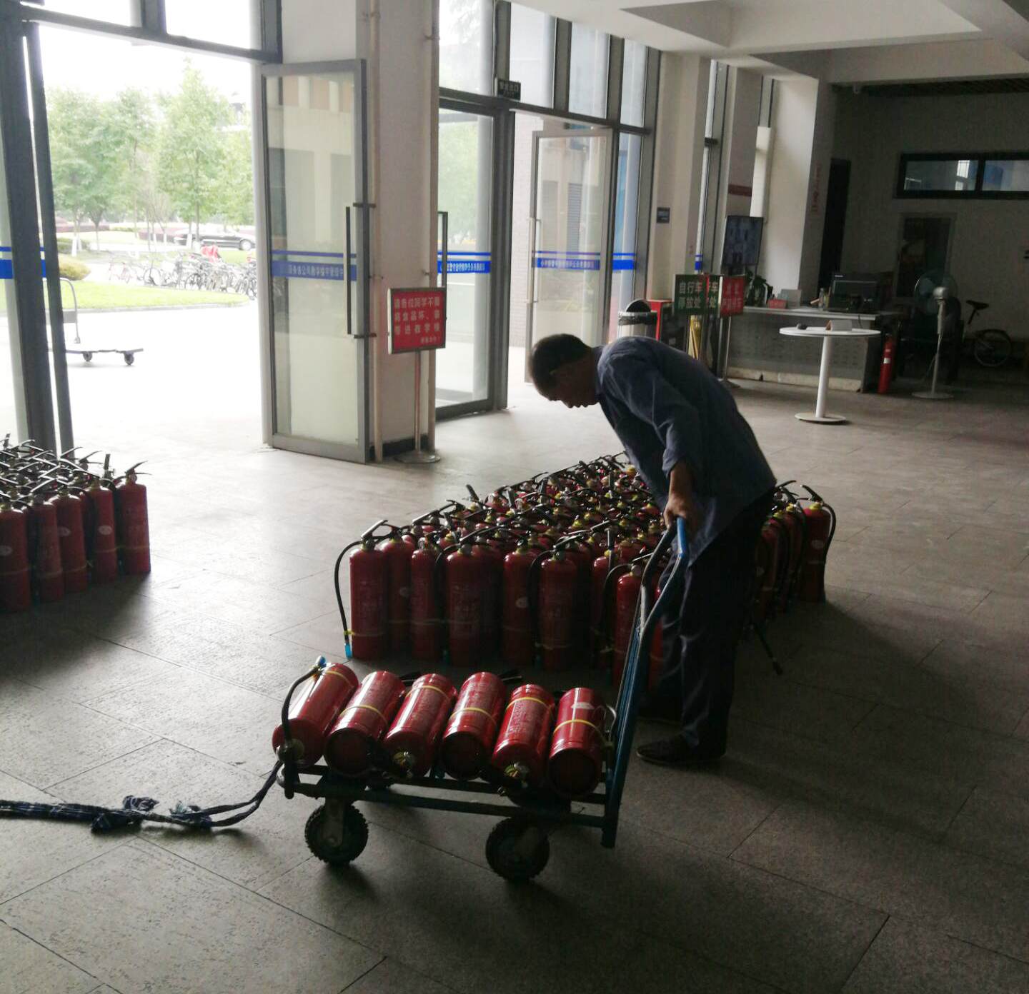5月25日至6月1日期間,實驗室組織相關教師對明德樓實驗室、逸夫樓實驗室的臨期滅火器材進行了更換。由于疫情特殊原因,所有實驗室學生均未返校、部分教師也沒有回實驗室,更換工作實驗中心相關教師只能逐一啟用備用鑰匙逐一搬取更換,確保每一間實驗室不能因為無師生返校錯過更換時間。