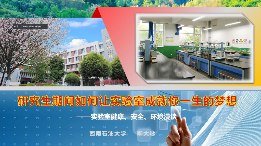 12月10日下午,實驗中心副主任卿大詠在化學化工學院研究生會的邀請下利用線上會議對化學化工學院2020級、2019級研究生開展可了實驗安全與個人防護專題培訓。卿老師以“研究生期間如何讓實驗室成就你一生的夢想”為題目與對研究生的實驗室安全意識、個人防護意識的培養、如何做好日常安全防護等內容進行了講解,并結合國內高校發生的一些典型實驗室安全事故案例進行了解讀。學院200多位研究生參與了培訓。