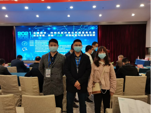 4月23日-27日,由全國危標委化學品毒性檢測分技術委員會主辦的“全國教學、科研及醫療單位實驗室危化品安全管理、實驗‘三廢’環保處置與應急培訓”在西安舉行,化學化工實驗中心教師卿大詠、蒲科羽與學校實驗室與設備管理處安全科伍建川副科長參加了本次培訓。