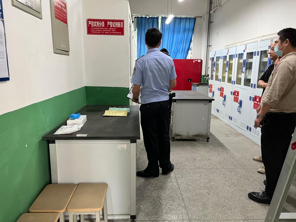 2022年4月27日上午,新都區公安局桂林派出所社區民警到我院實驗中心進行例行檢查,重點對實驗中心化學試劑暫存間的化學品存取臺賬、防盜網進行了檢查。學校實驗室與設備管理處實驗室安全科副科長伍建川、我院實驗室分管安全工作副主任卿大詠等實驗中心教師接待了檢查組一行。