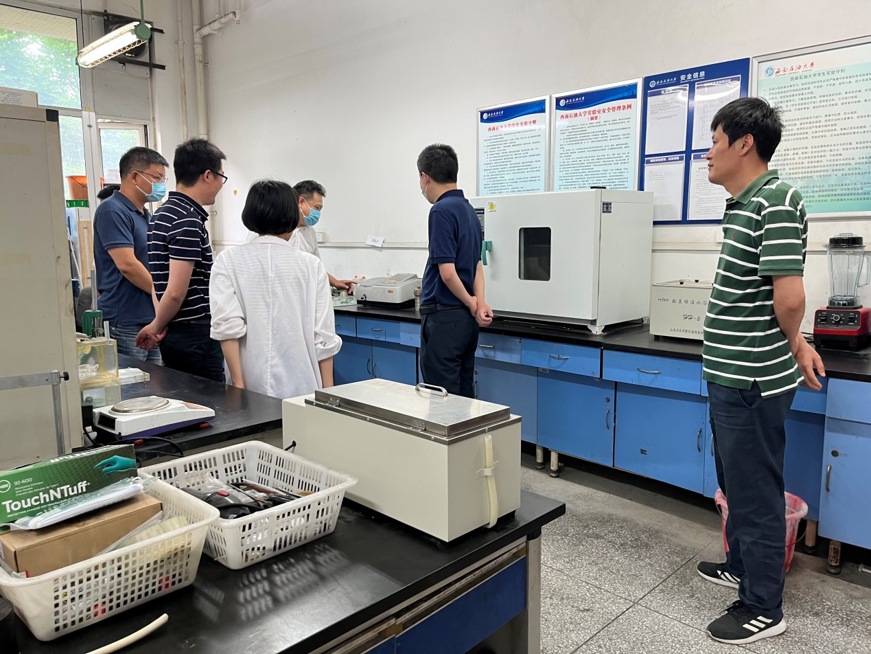 6月9日下午,接到省教育廳組織的專家檢查組的實驗室安全檢查反饋信息后,學院黨政領導第一時間帶隊到各實驗室進行檢查。