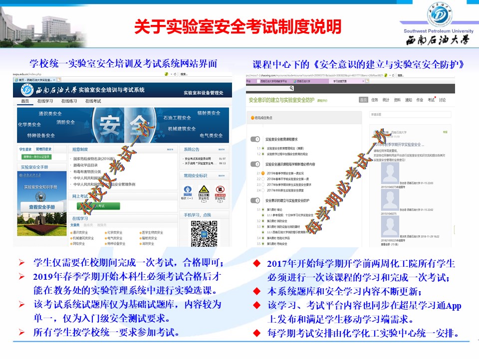 因部分學生對學校相關實驗安全考試系統存在混淆,現統一做以下說明,請相關同學按相應實驗安全考試要求完成對應的考試。