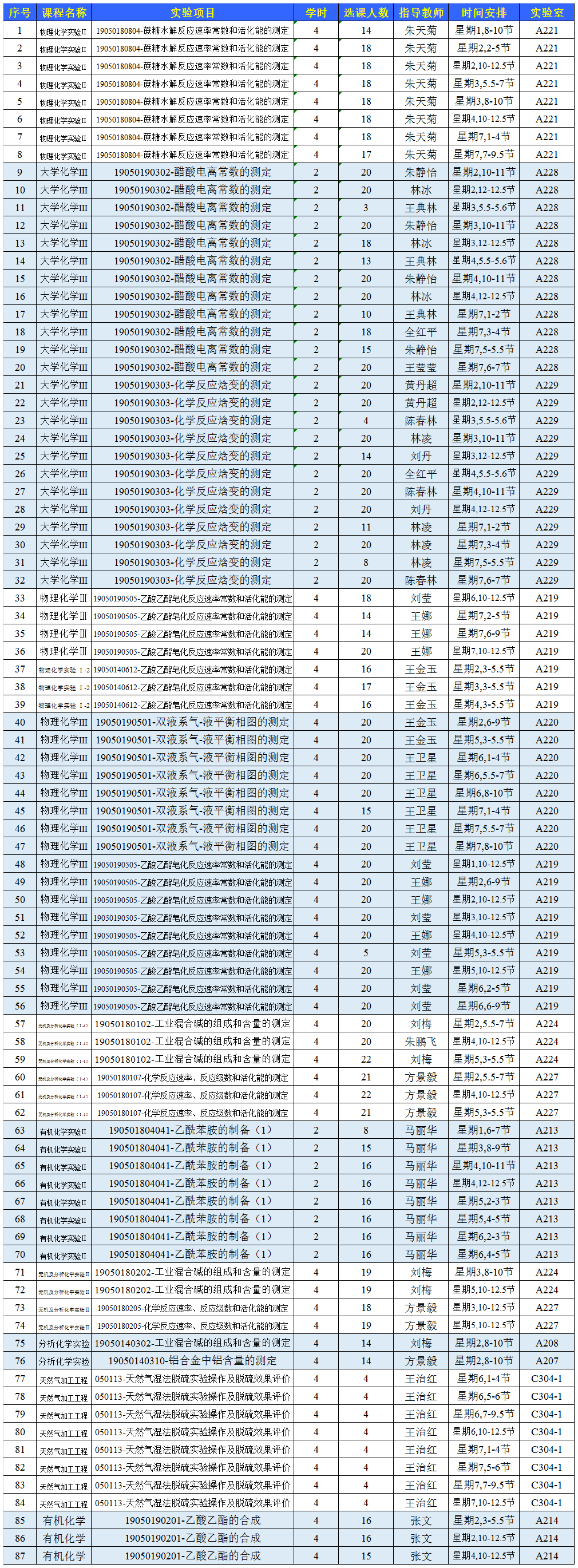 化學(xué)化工實(shí)驗(yàn)教學(xué)示范中心2021年春季學(xué)期第6周實(shí)驗(yàn)教學(xué)安排