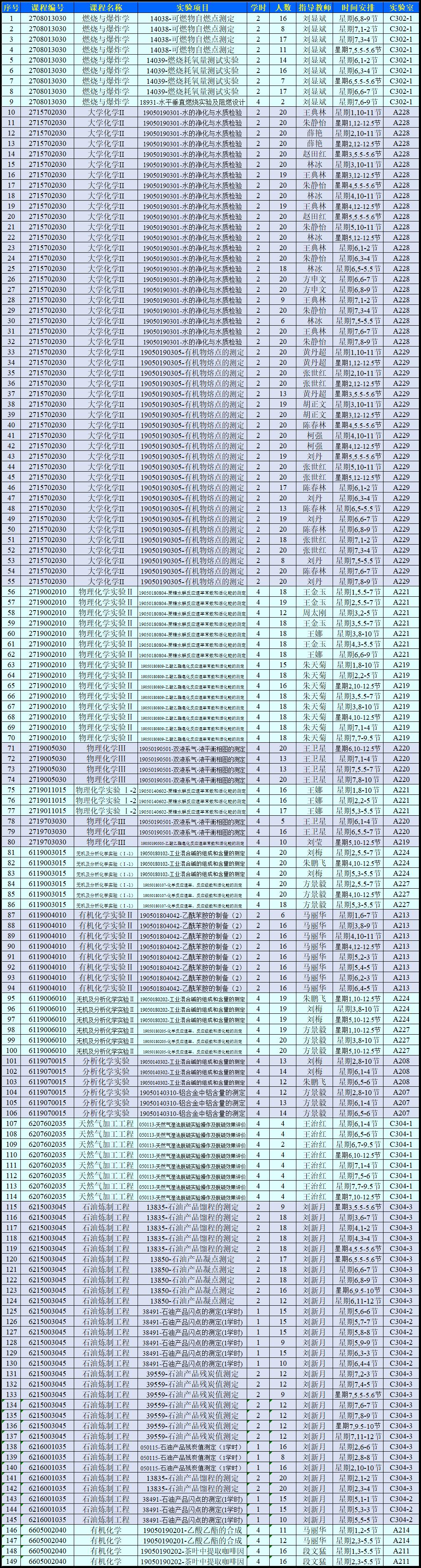 化學化工實驗教學示范中心2021年春季學期第7周實驗教學安排