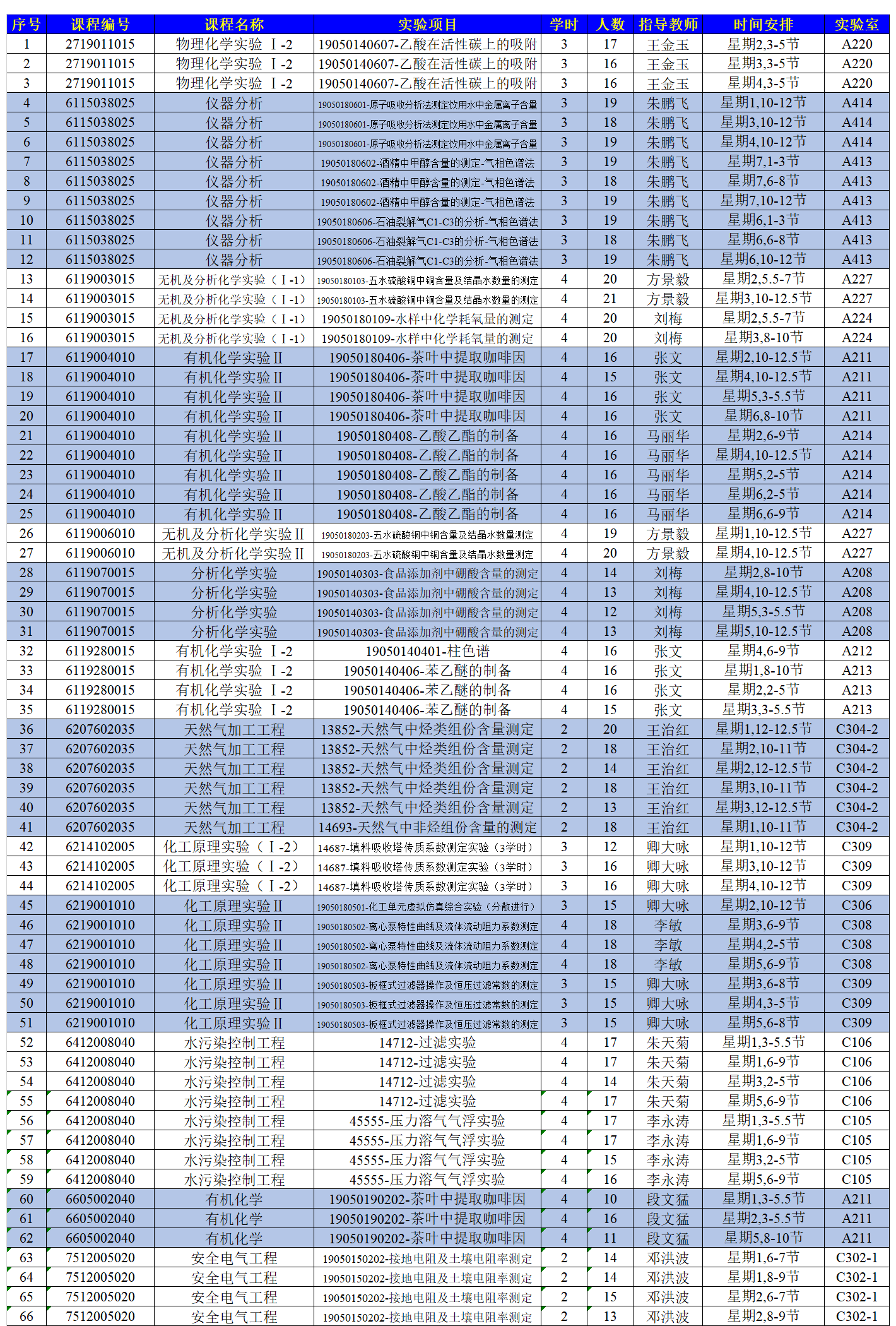 化學化工實驗教學示范中心2021年春季學期第9周實驗教學安排