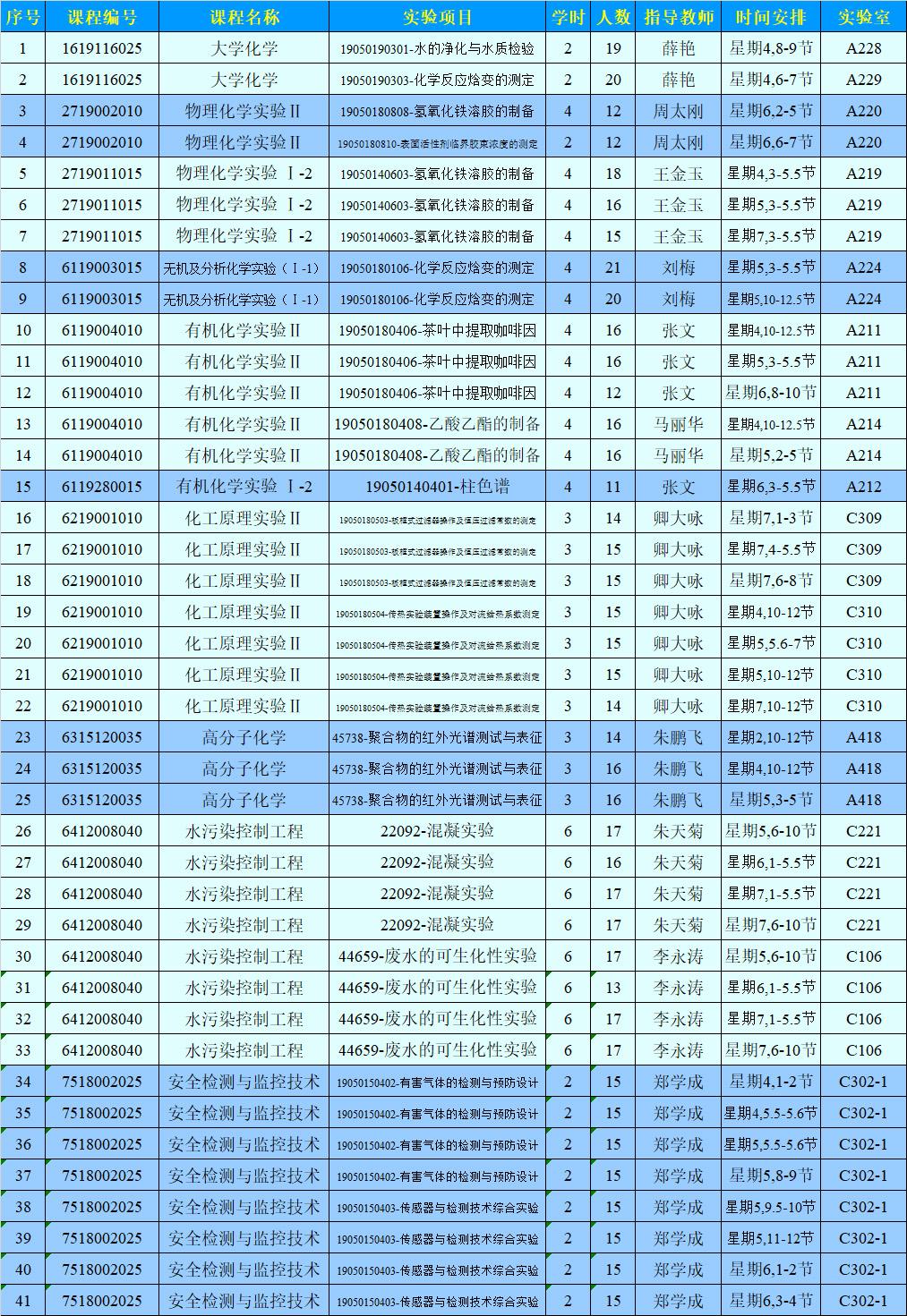 化學(xué)化工實驗教學(xué)示范中心2021年春季學(xué)期第10周實驗教學(xué)安排